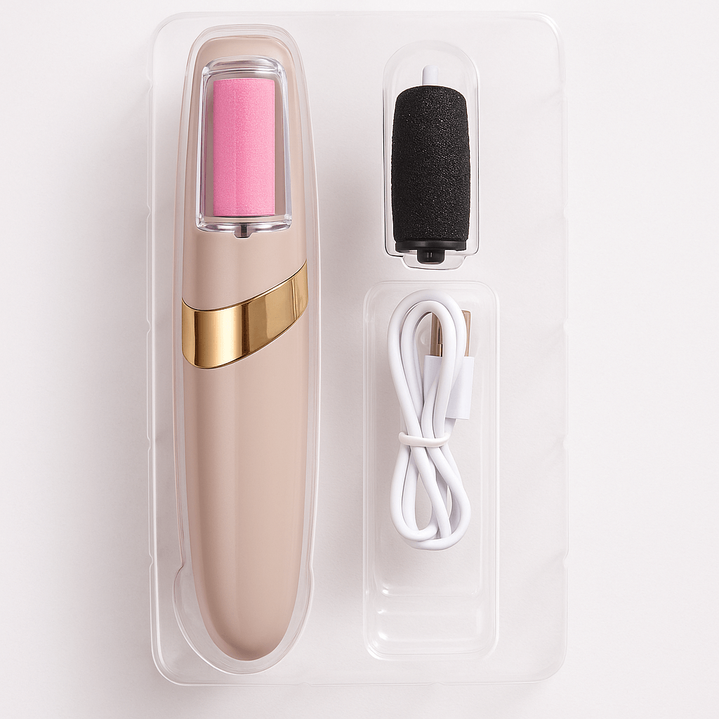 Con nuestra herramienta de pedicura, puedes suavizar tus talones en minutos y recuperar la confianza para mostrar tus pies cuando quieras.
